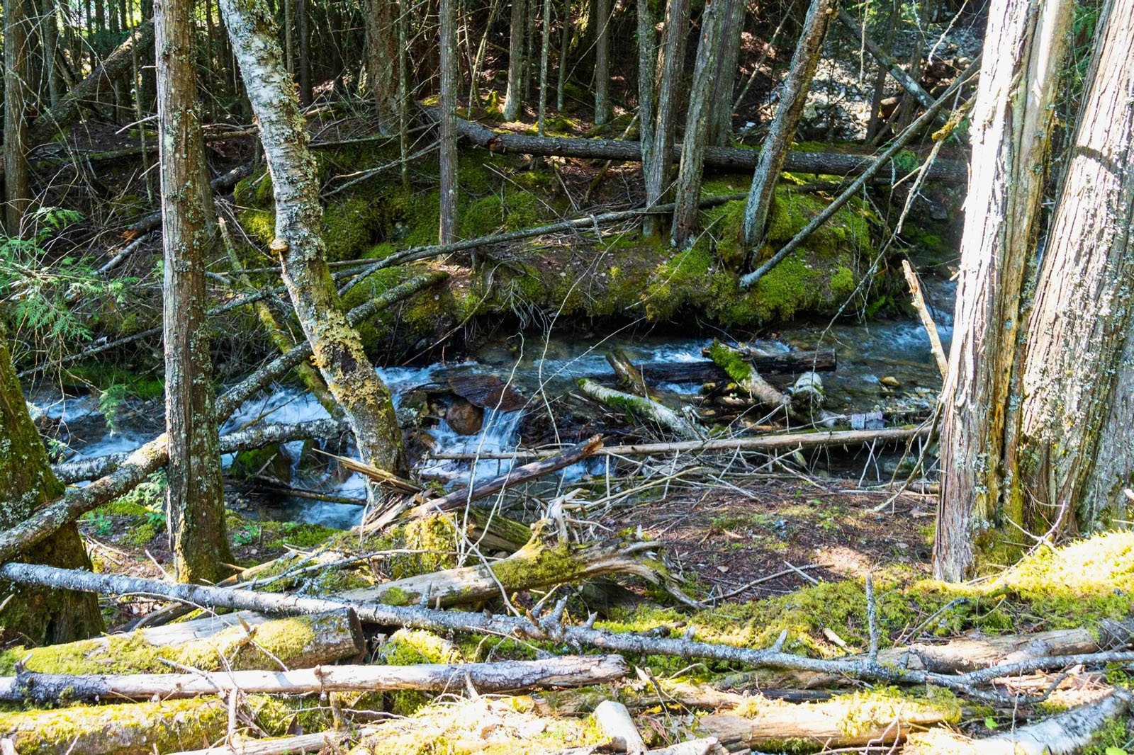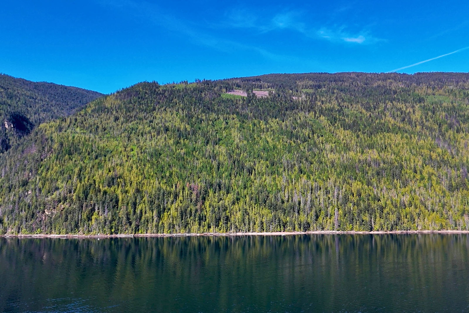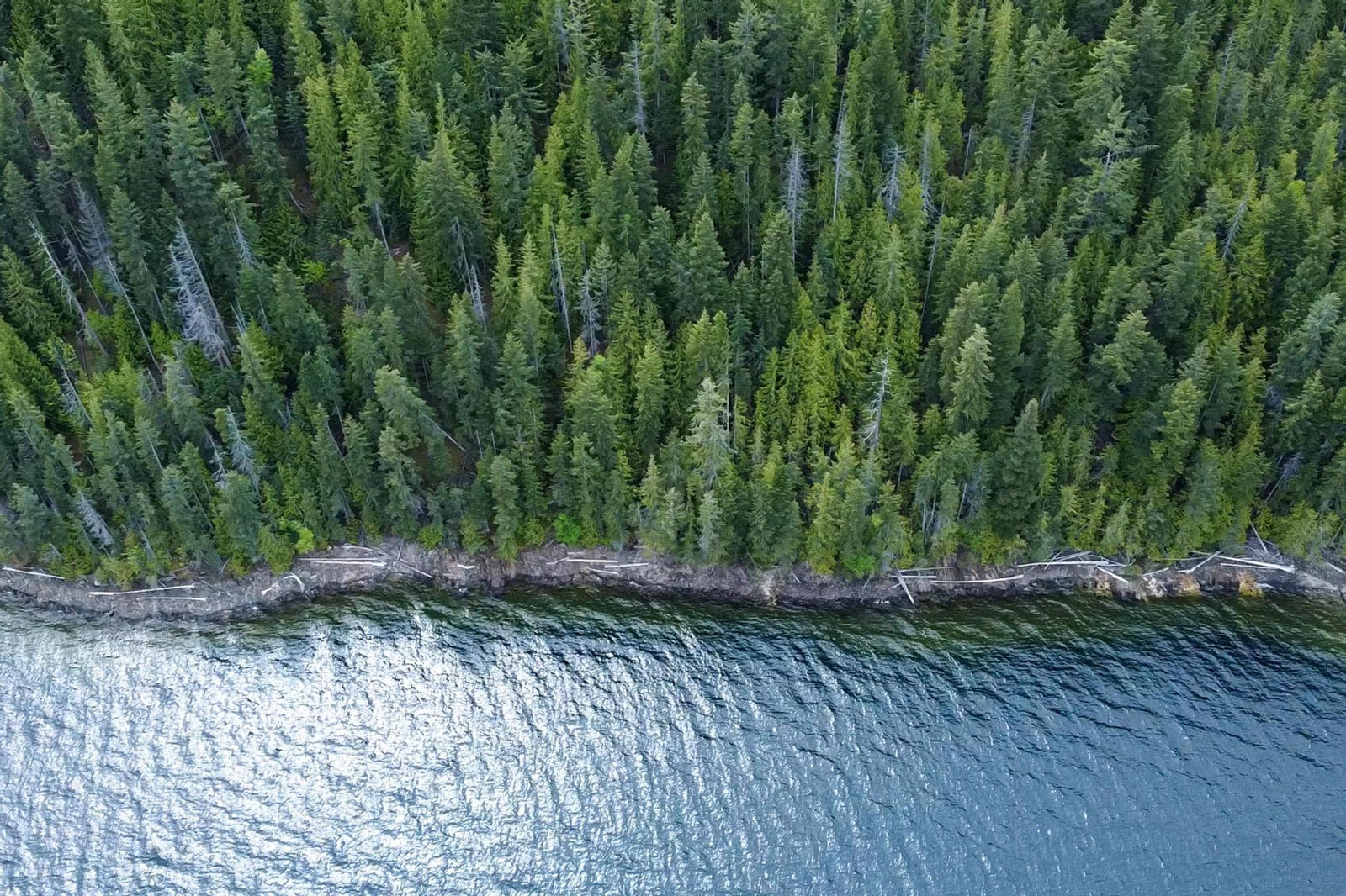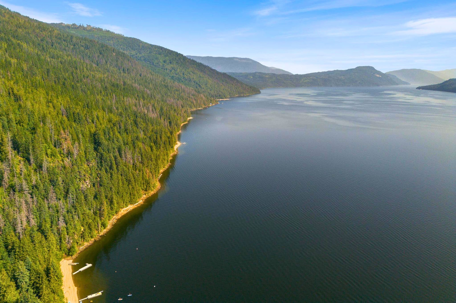 The balance of the acreage is largely forested and accessed by an old logging road and trail network, suitable for exploring, hiking, hunting, and general recreational use. Elevated areas across the property provide wide views directly across to Sicamous and north toward Anstey Arm, offering multiple outlooks across the lake and surrounding landscape.