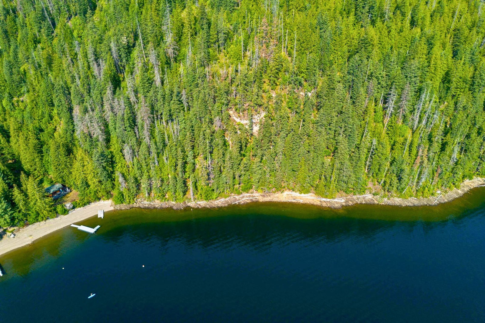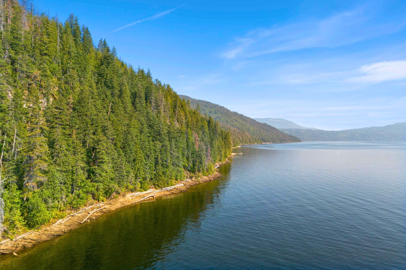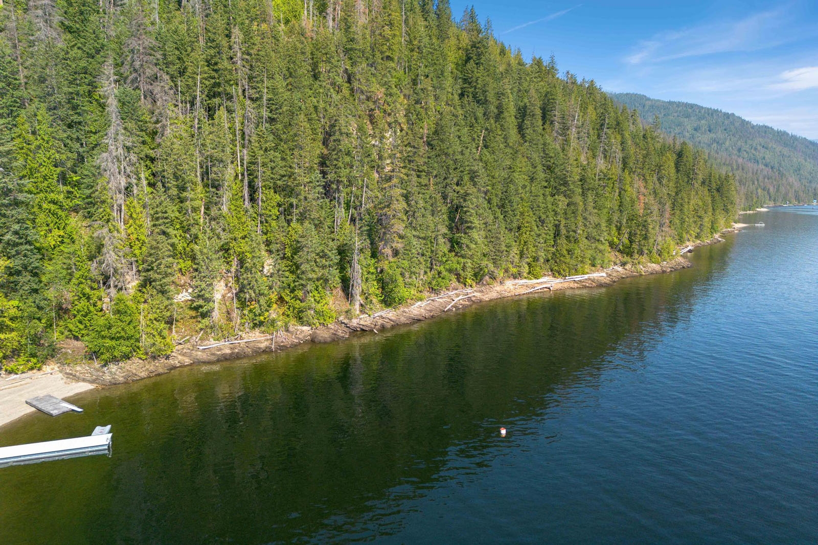 A 2- to 3-acre flat, buildable bench provides a practical road accessible site for a main residence and outbuildings, located approximately 100 metres from the lake. Power is available nearby, supporting future development options.