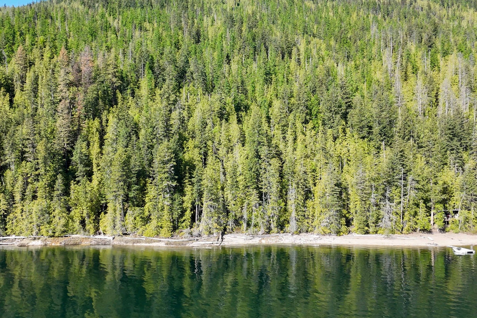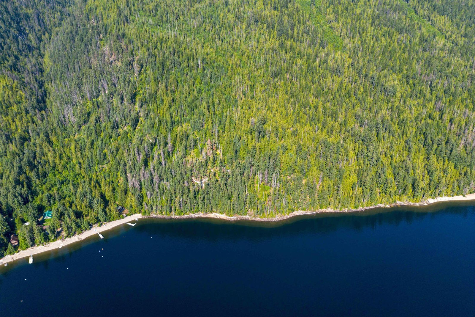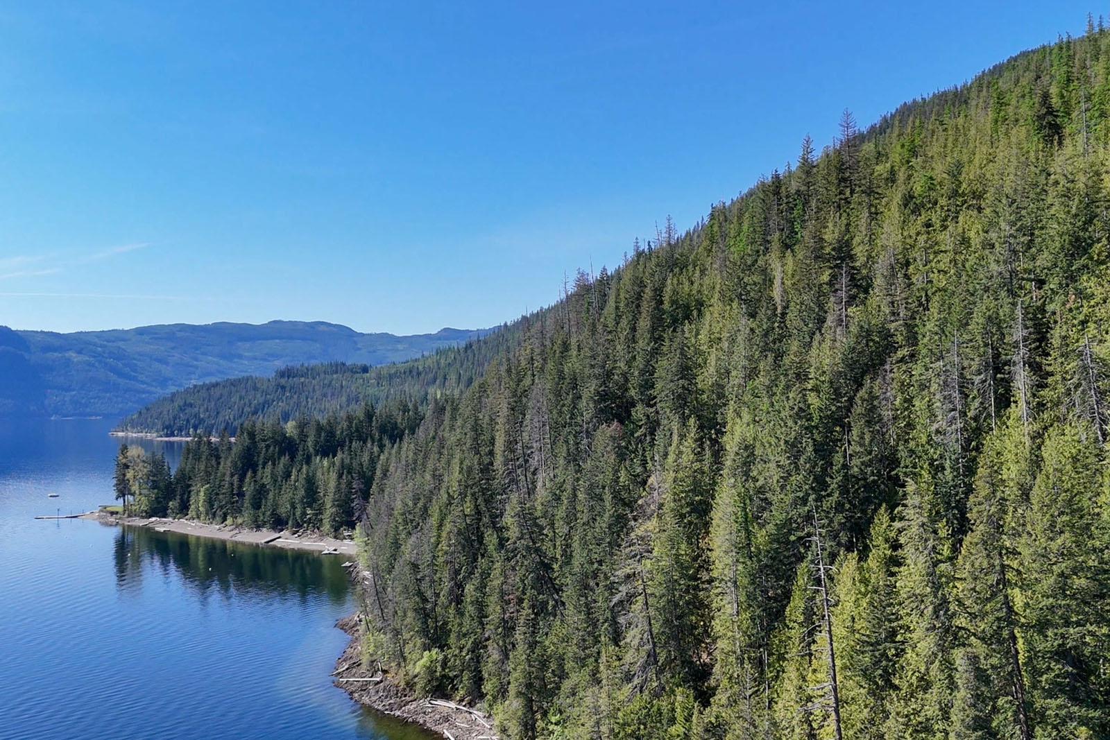 A 2- to 3-acre flat, buildable bench provides a practical road accessible site for a main residence and outbuildings, located approximately 100 metres from the lake. Power is available nearby, supporting future development options.