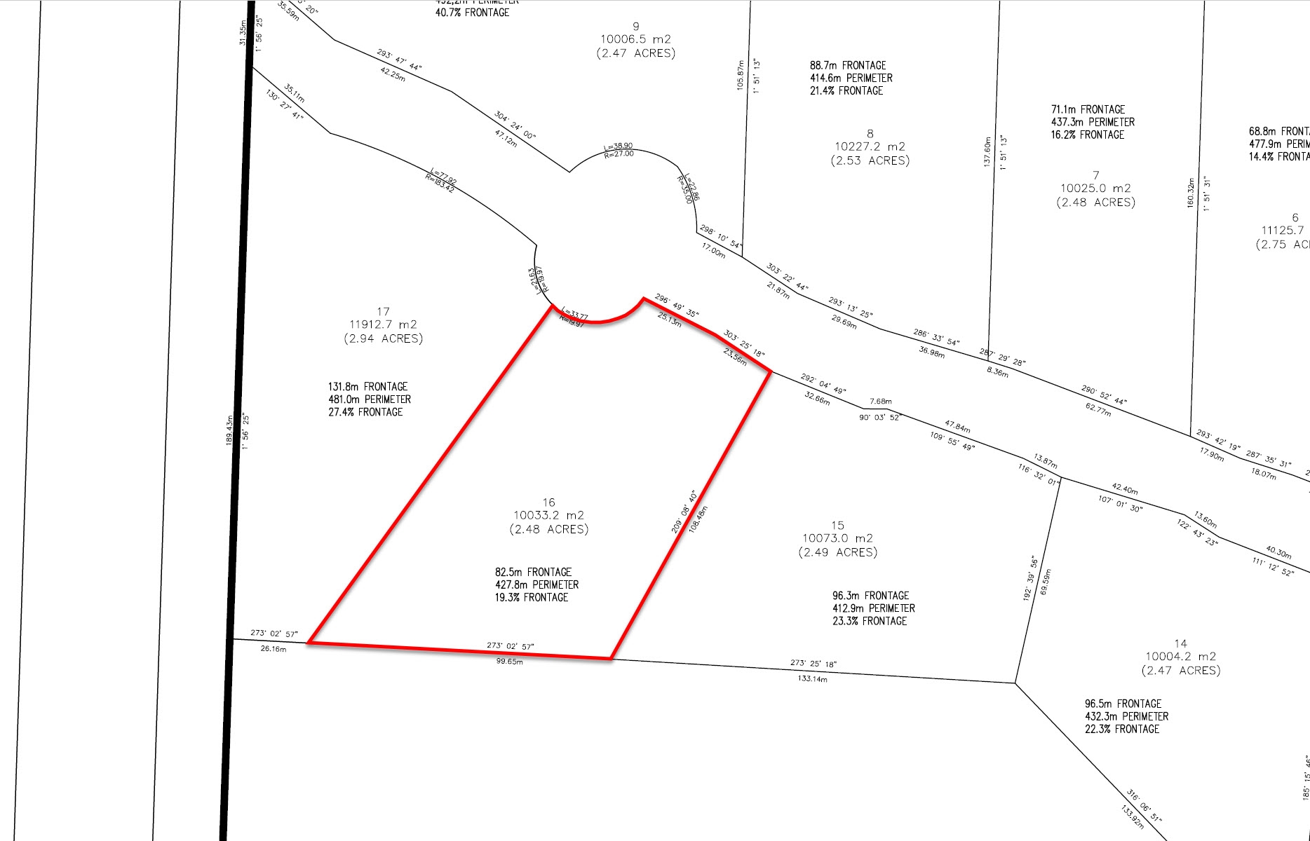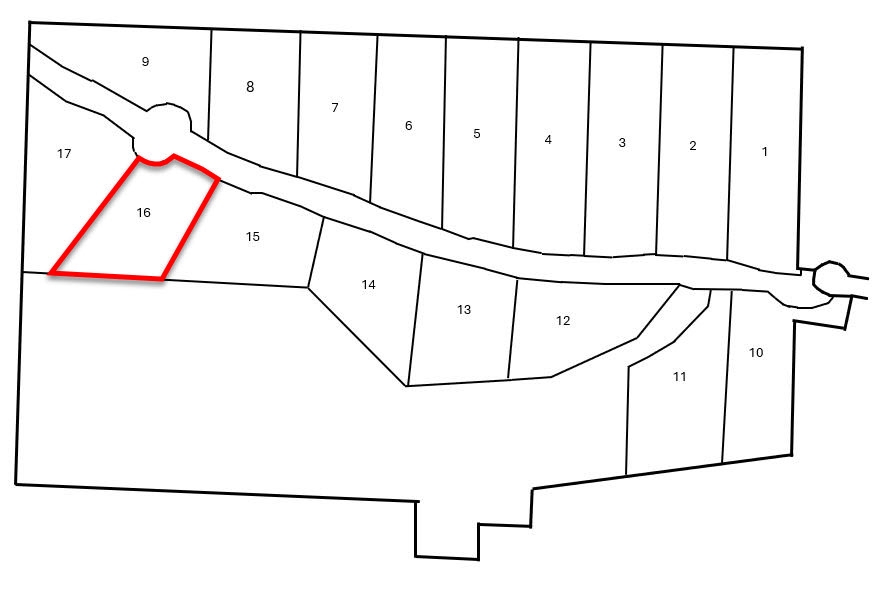 Year-round public/MOTI roads. Owners are responsible for driveway construction. Driveways on Lots 6 and 16 have been rouged in.