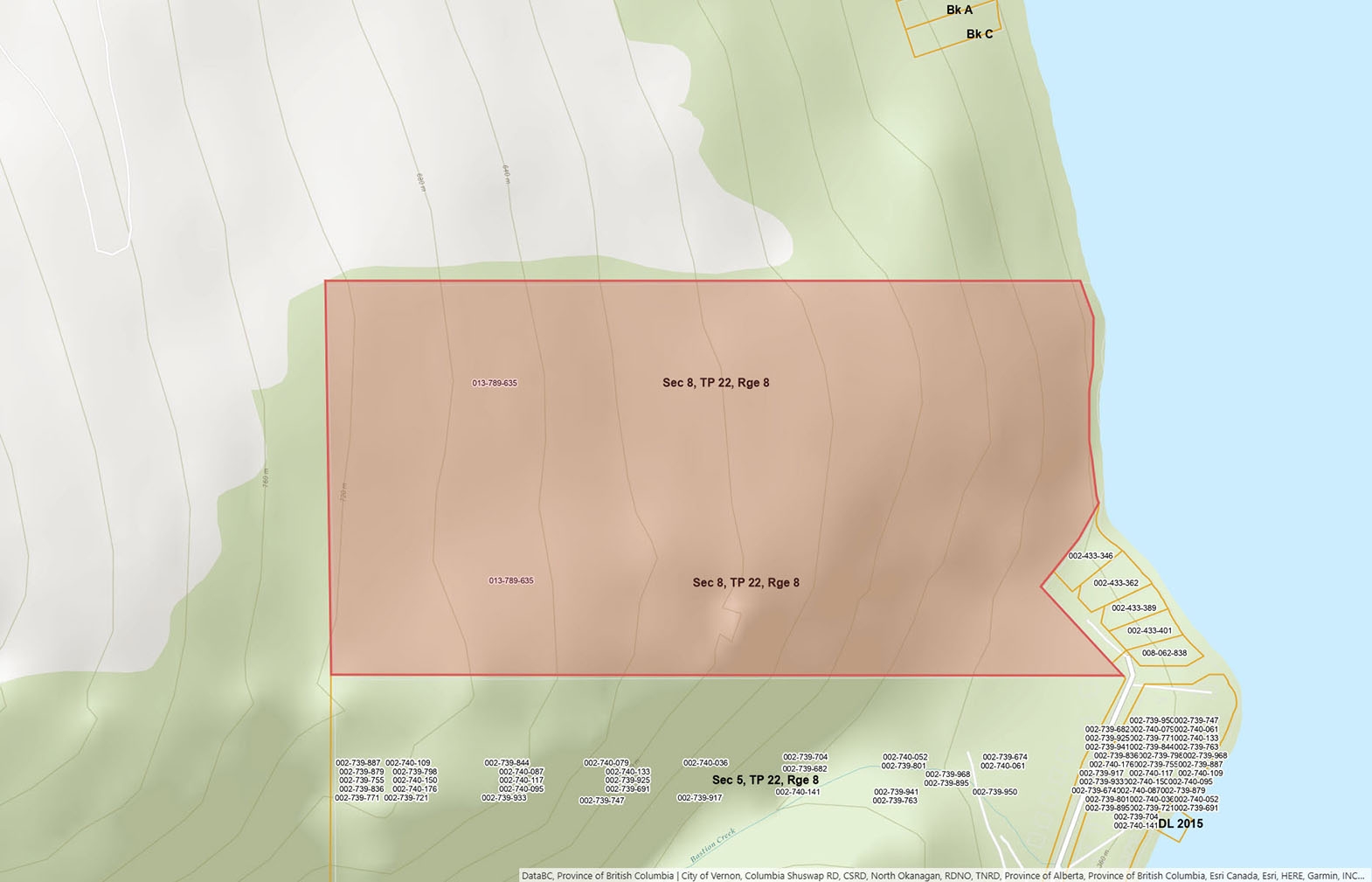 That Part South 1/2 of the South 1/2 Section 8 which lies to the West Shore of Shuswap Lake as shown on Plan of said Township dated the 22nd of November, 1911 Township 22 Range 8 West of the 6th Meridian Kamloops Division Yale District except Plan 19364