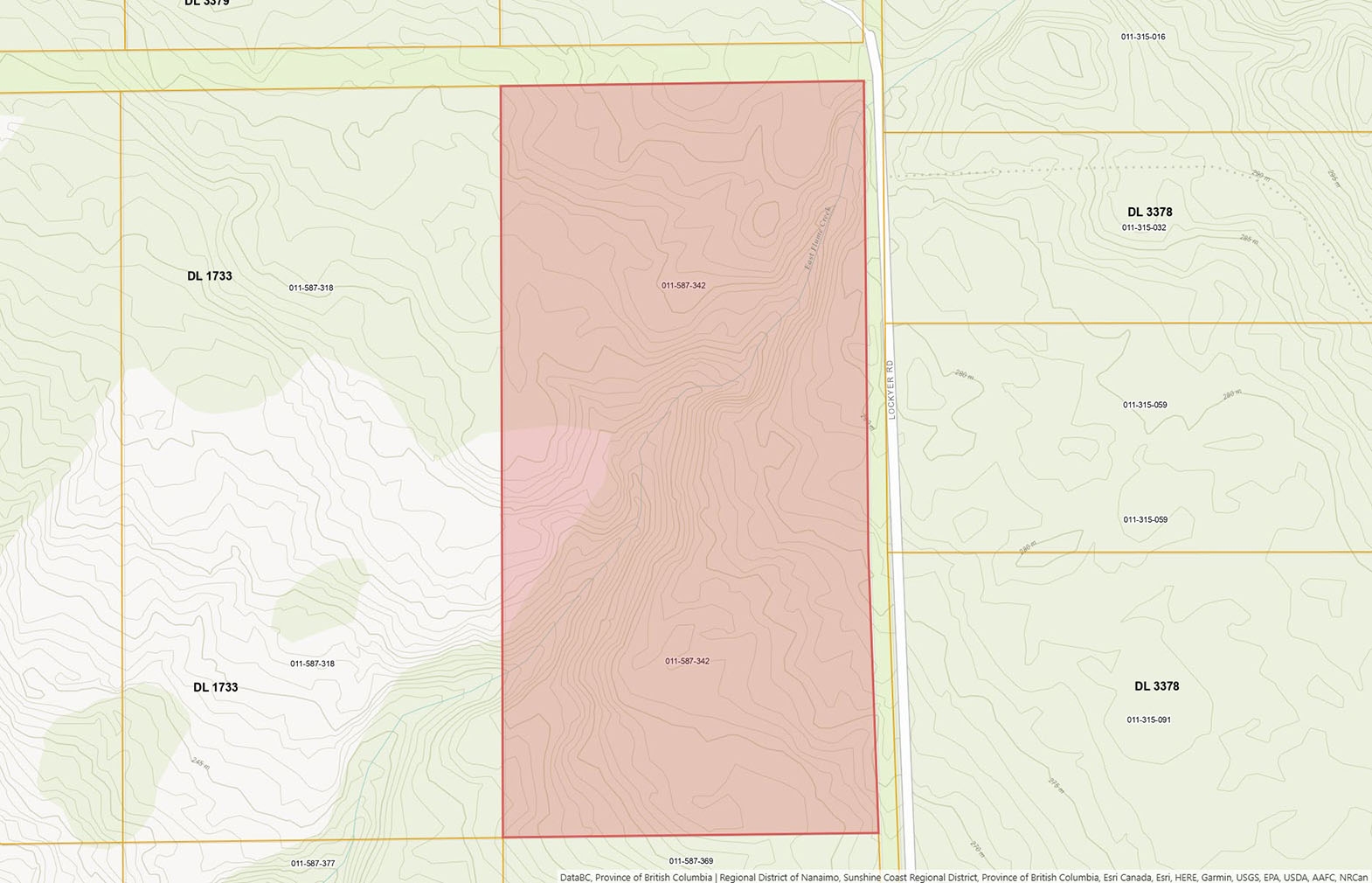 Positioned to capture stunning distant ocean views and set amidst forested surroundings, this 20.3-acre property offers the perfect blend of seclusion and convenience. Zoned RF1, the property permits a single-family home with a suite and supports forest management uses—making it ideal for a private estate or sustainable living venture. A beautiful creek winds through the riparian zone, adding natural charm and biodiversity. At the northern boundary to the other side of the creek the area is beautifully forested which represents just under half of the total acreage. The balance is a planted immature forest with trees ranging from 6 to 8 feet in height.