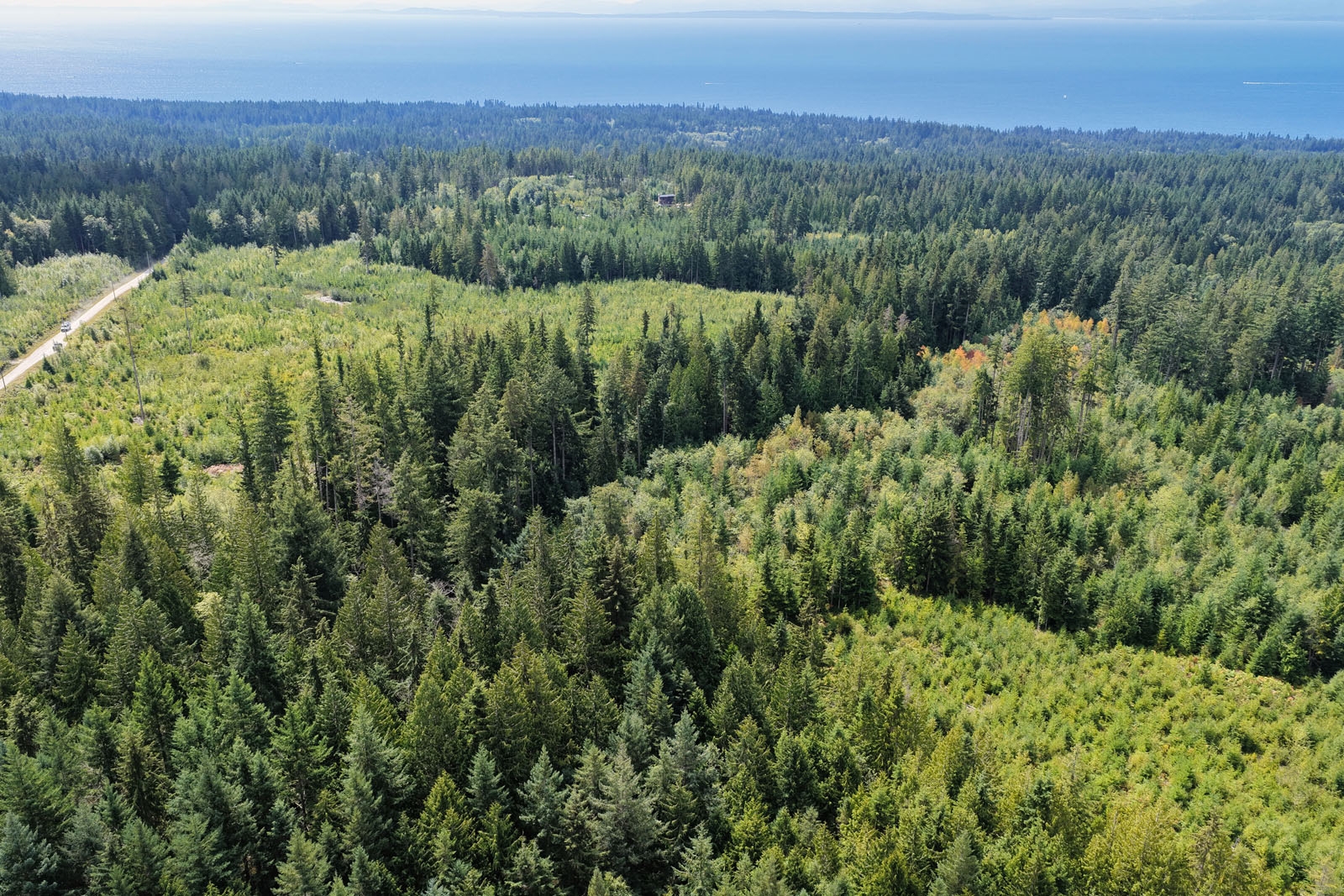 Positioned to capture stunning distant ocean views and set amidst forested surroundings, this 20.3-acre property offers the perfect blend of seclusion and convenience. Zoned RF1, the property permits a single-family home with a suite and supports forest management uses—making it ideal for a private estate or sustainable living venture. A beautiful creek winds through the riparian zone, adding natural charm and biodiversity. At the northern boundary to the other side of the creek the area is beautifully forested which represents just under half of the total acreage. The balance is a planted immature forest with trees ranging from 6 to 8 feet in height.