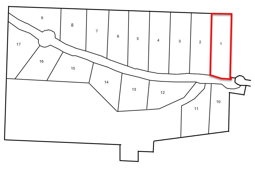 Year-round public/MOTI roads. Owners are responsible for driveway construction. Driveways on Lots 6 and 16 have been rouged in.