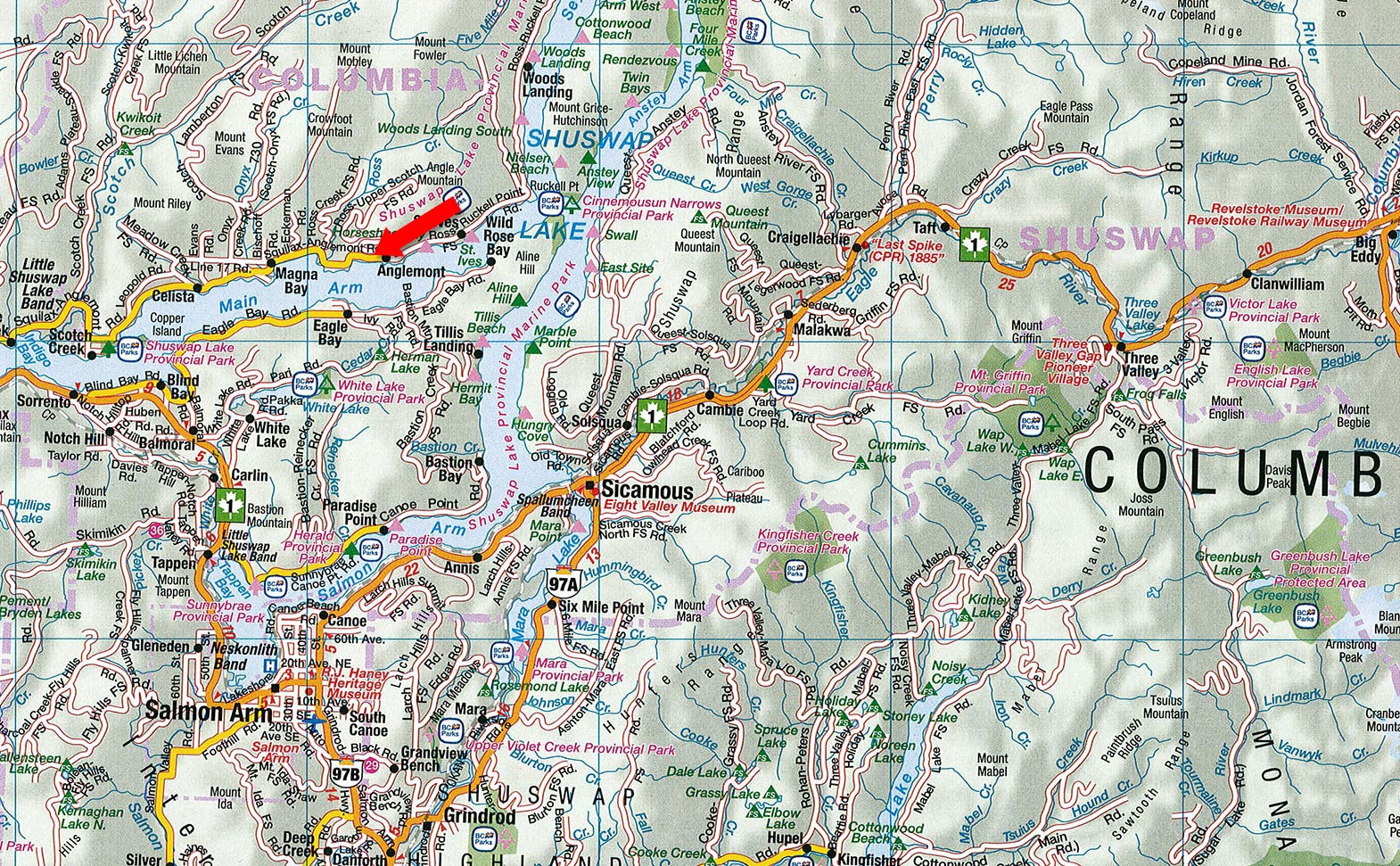 Anglemont is a lakeside community in the North Shuswap, located 1 hour to Salmon Arm and just over an hour the major city of Kamloops. The North Shuswap is made of a string of lakeside communities—Lee Creek, Scotch Creek, Celista, Magna Bay, Anglemont, St. Ives, and Seymour with a year-round population of approx. 3,500 and many more vacation home visitors. The North Shuswap truly is an unparalleled paradise. Mild winters, warm/hot summers, long autumns and short winters make for a perfect BC lifestyle. Rainy periods last hours, not days or weeks and then the sun is out again. A long growing season means that gardeners are some of the happiest people around here. Vineyards (the most northerly in the province), nectarines, apples, cherries, pears, peaches and parsnips grow throughout the area. Local farms produce excellent beef and lamb. (Source: North Shuswap Chamber of Commerce)