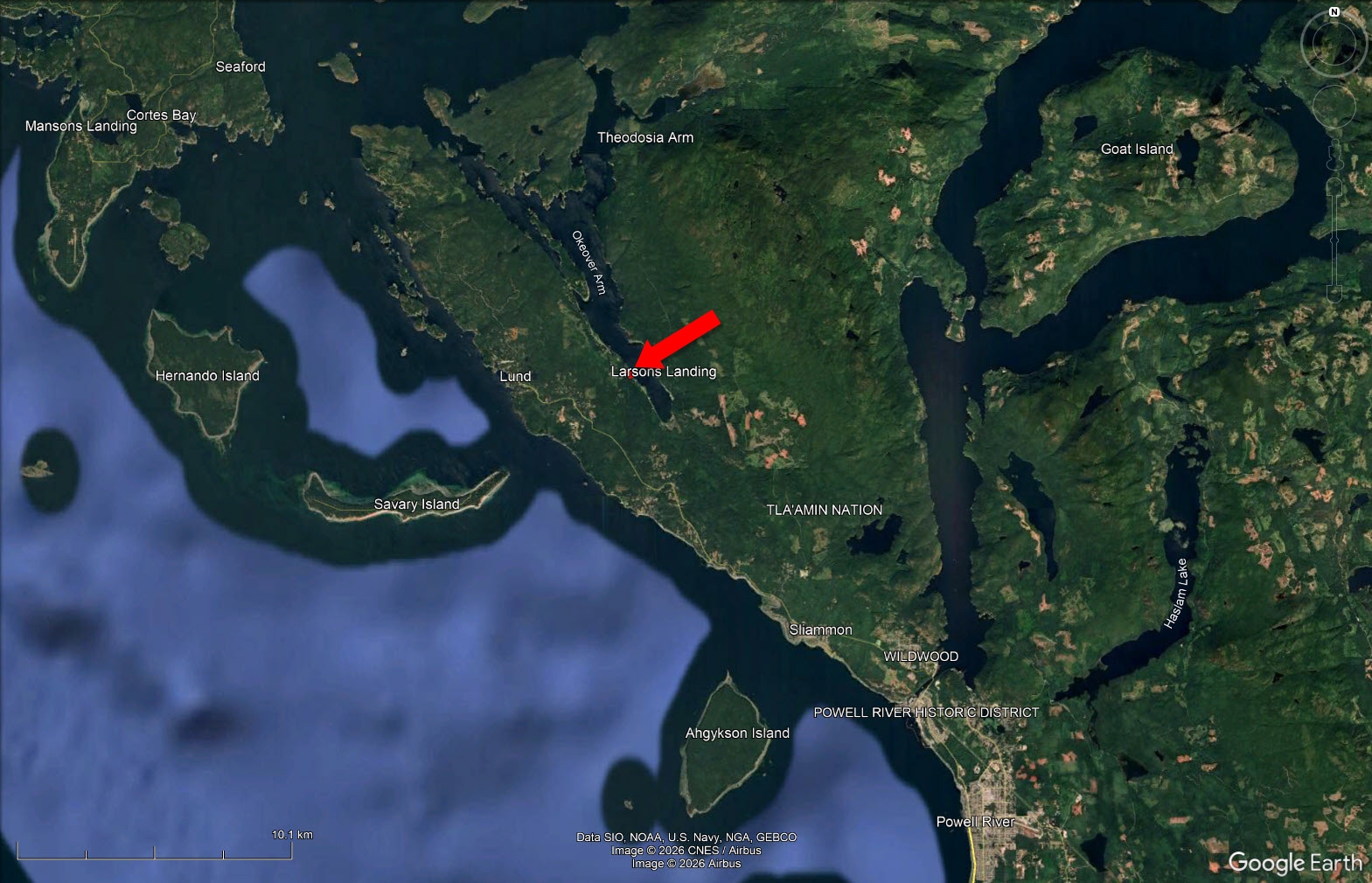 Desolation Sound, Savary Island, Harwood Island, Bliss Landing and the Copeland Islands are areas of interest and are all located in close proximity to the property. The area is rich in natural beauty and abundant with sea life. The area is also rated among the best in the world for its scuba diving.