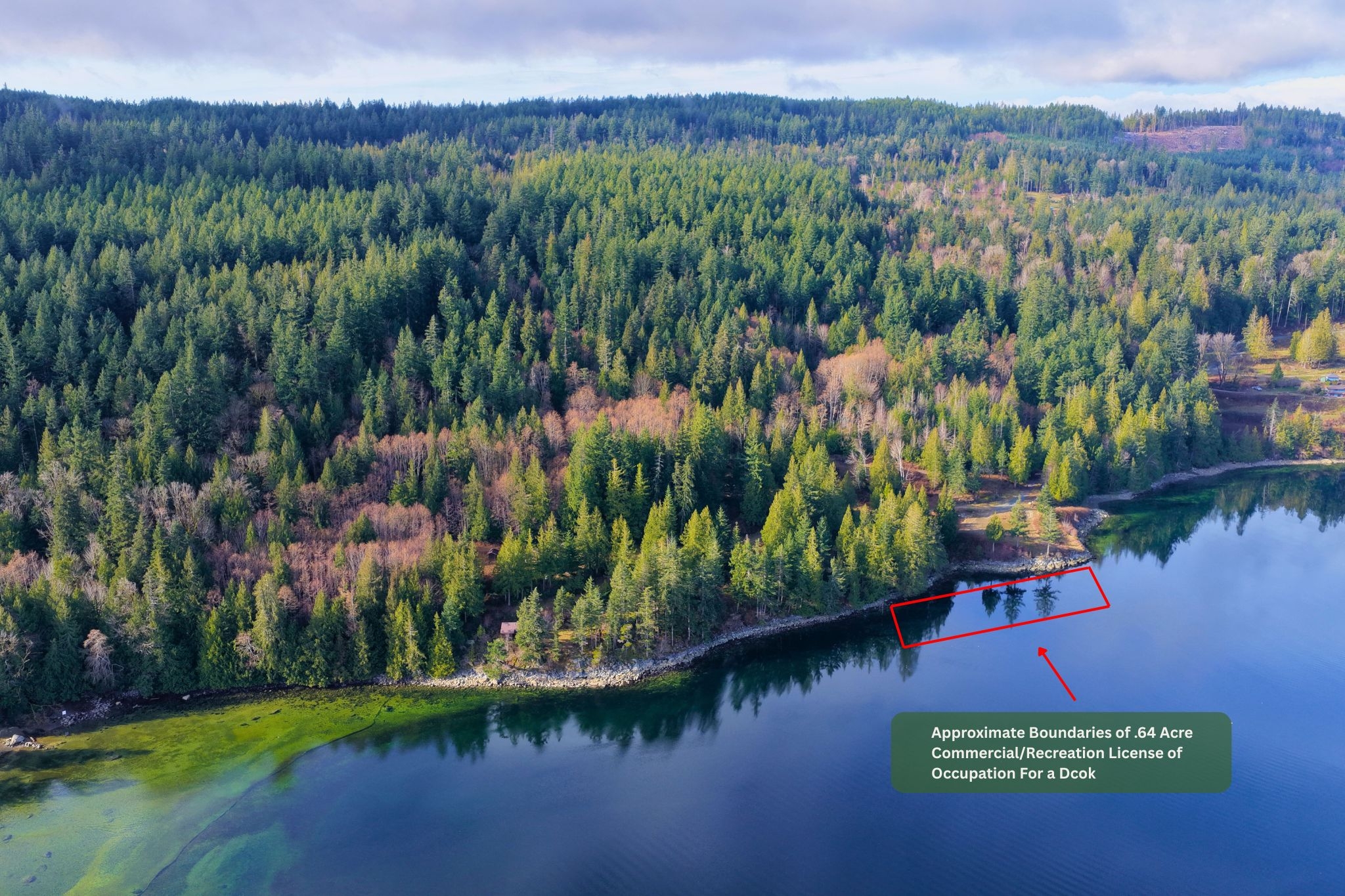 The offering includes a 0.64-acre Commercial/Recreation Licence of Occupation for a dock with approximately 20 years remaining on its current term. The moorage location is well protected, making it suitable for larger vessels and long-term use.