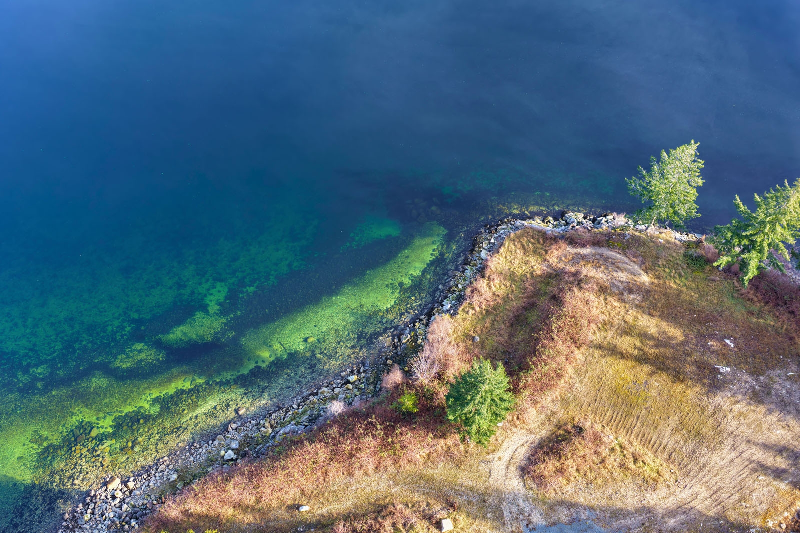 Divers can explore the Okeover Caves on the east side of Okeover Arm. The sheer rock wall descends straight down and there are two caves, with the deeper one being at 27 to 30 metres. There are facilities for divers in Lund that include dive-kayak rentals, charters and air fills.
