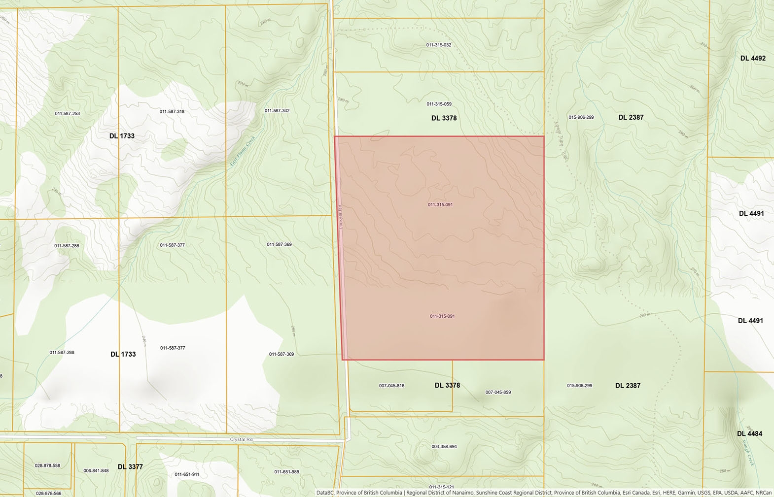 Zoned RF1, the property permits a single-family home with a secondary suite and supports forest management uses, offering flexibility for a private residence, recreational use, or a longer-term holding.