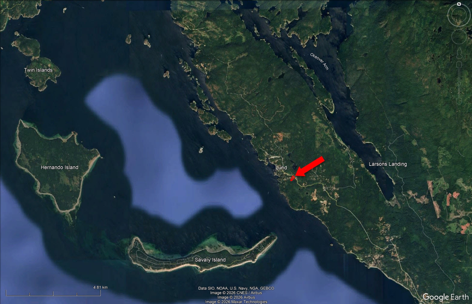 Lund is a well-known coastal gateway with a full-service marina, restaurants, shops, and a community store, and is the main access point to Savary Island, Hernando Island, and the surrounding island groups. Nearby Okeover Arm provides protected waters and is a launching point into Desolation Sound, one of the most sought-after boating destinations on the coast. The area offers excellent fishing, prawning, and crabbing, along with boating, kayaking, and a wide range of outdoor recreational opportunities.